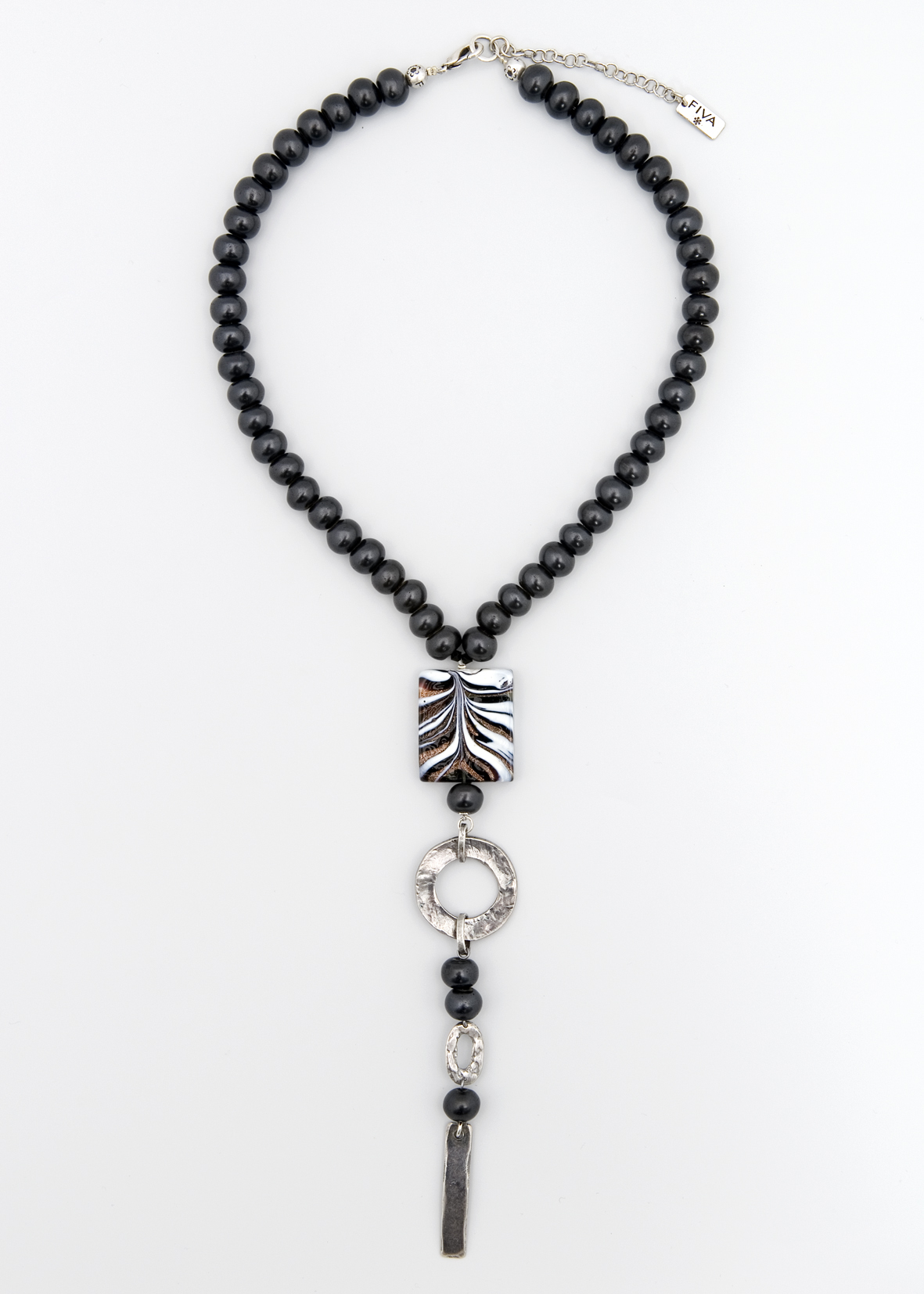 Produktinformationen "Halskette Murano-Silber Schwarz - Weiß"