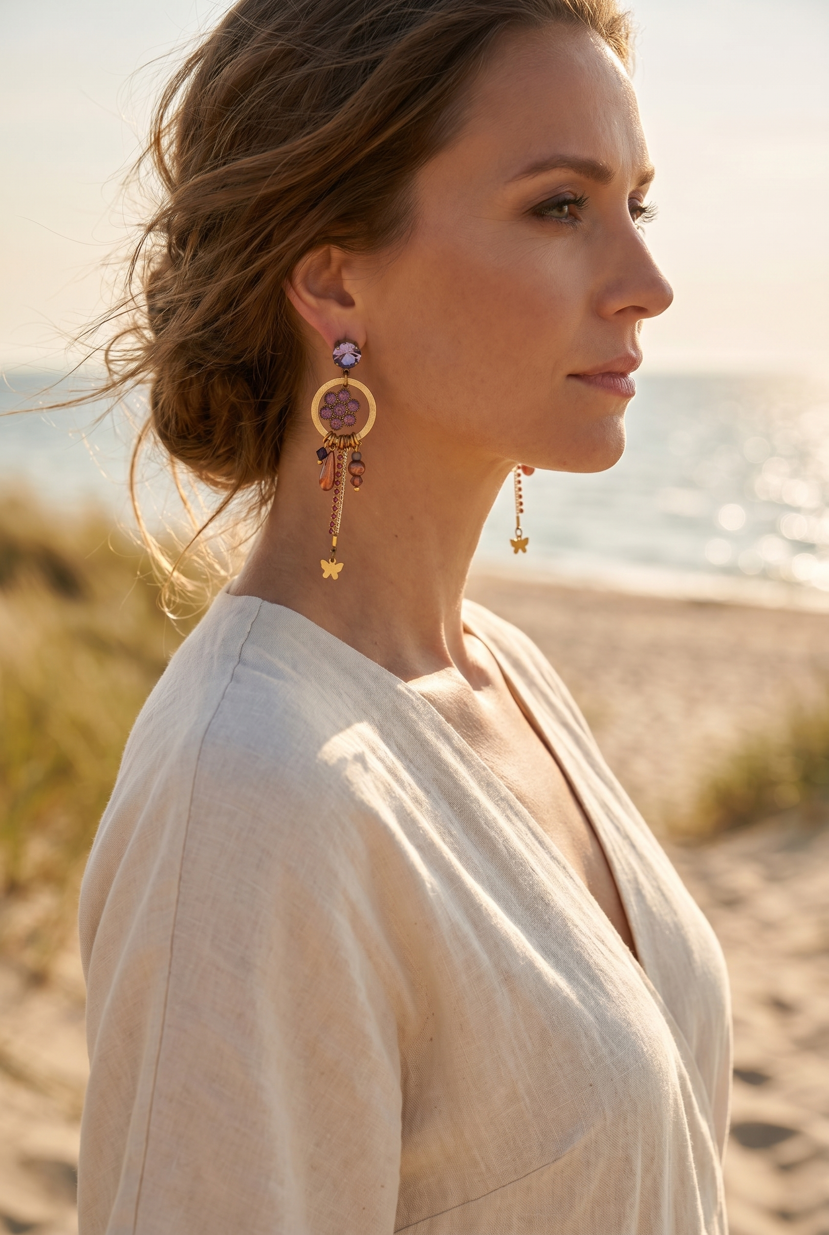 langer Fiva Ohrhänger Lila-Gold lang mehr