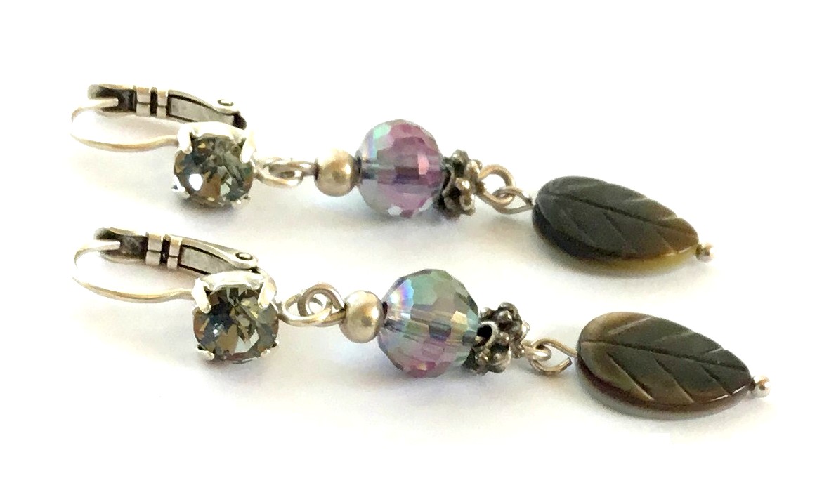 1 Paar Fiva Ohrhänger mit Perlmutt-Blatt und Pink-schimmernder Glasperle mehr