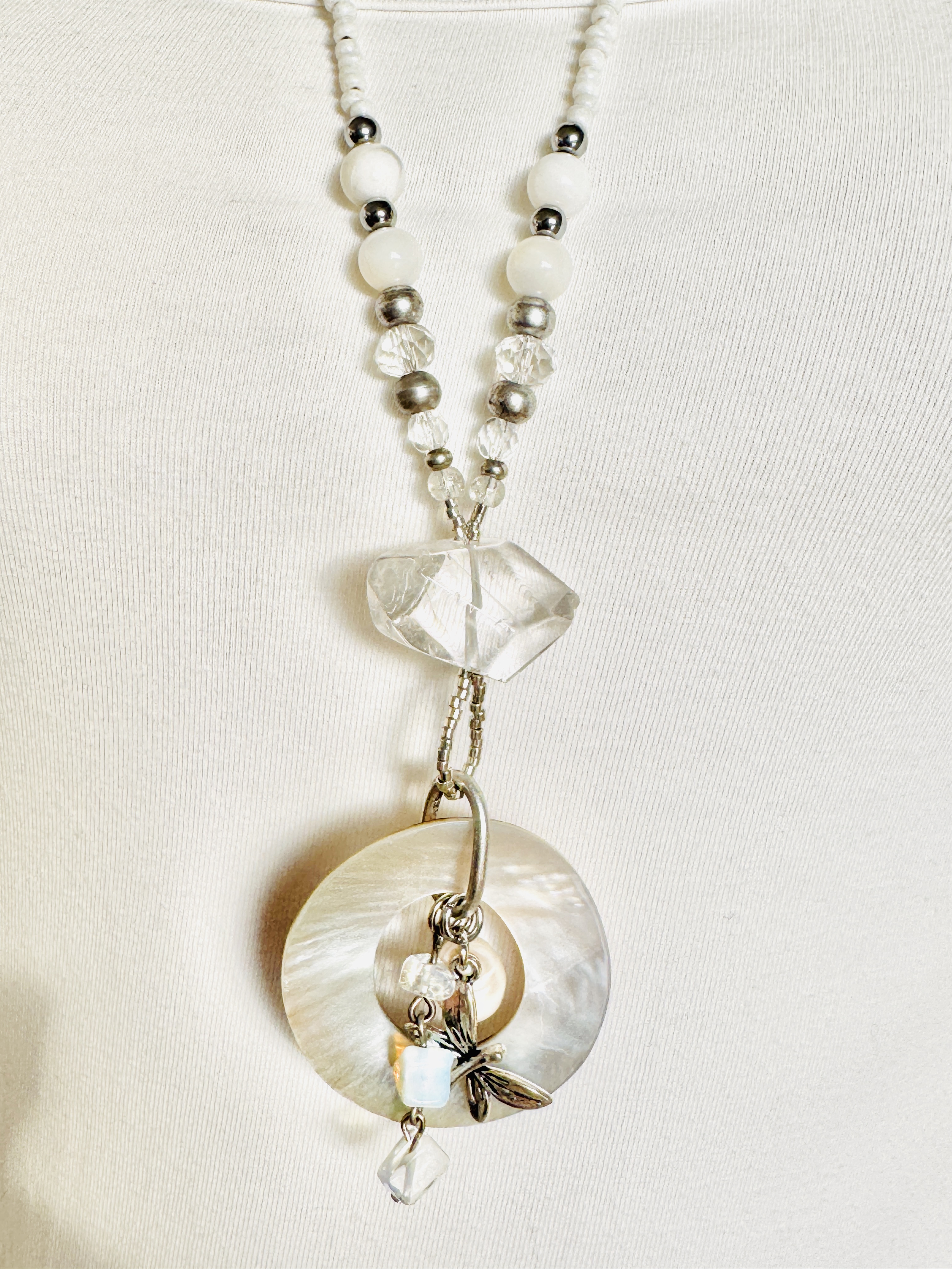 Related links to "Fiva long necklace, White-Silver Dragonfly"