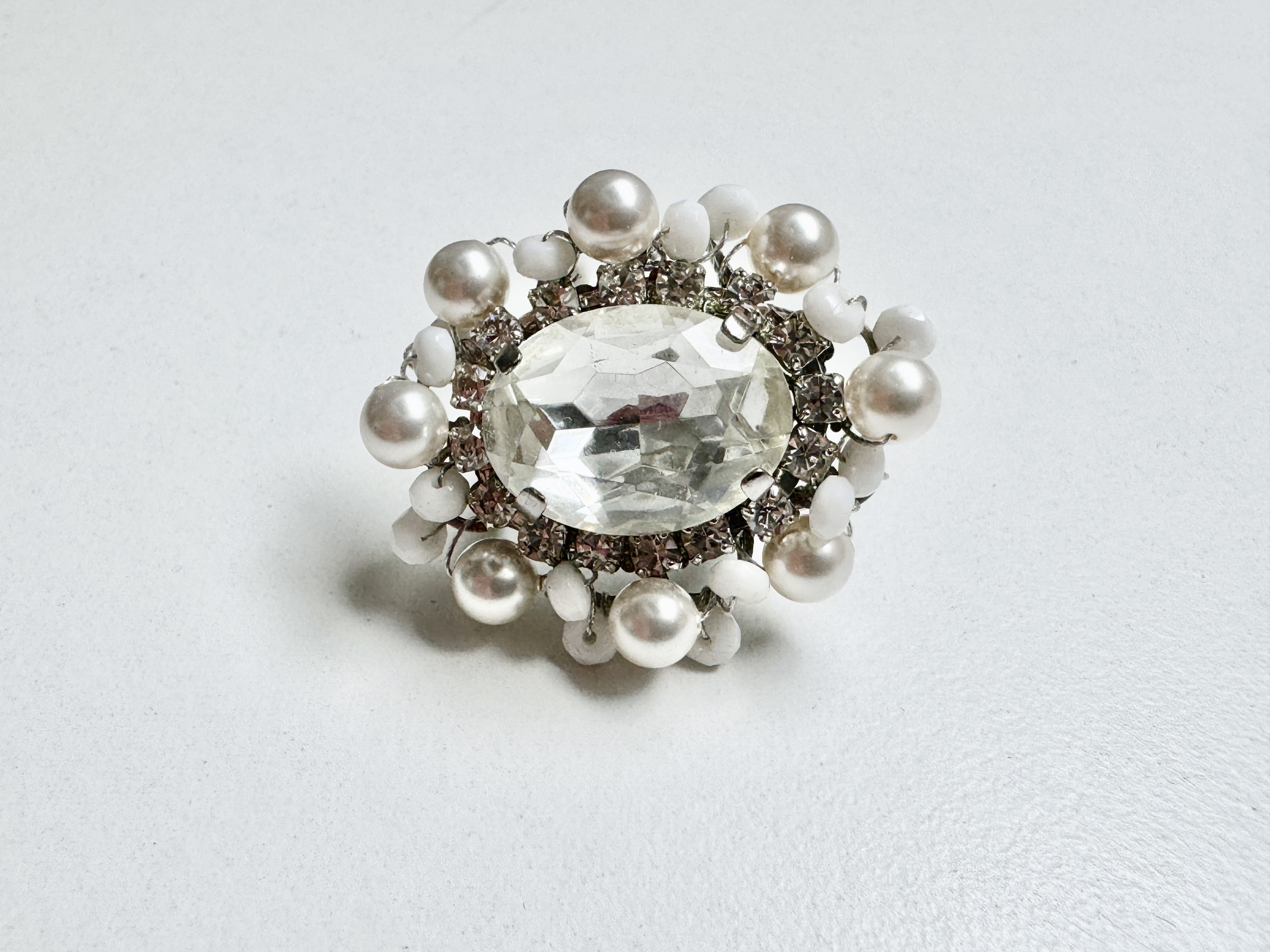 Product information "Fiva Cocktailring mit ovalem Glaskristall – Eleganz mit feinen Perlchen"